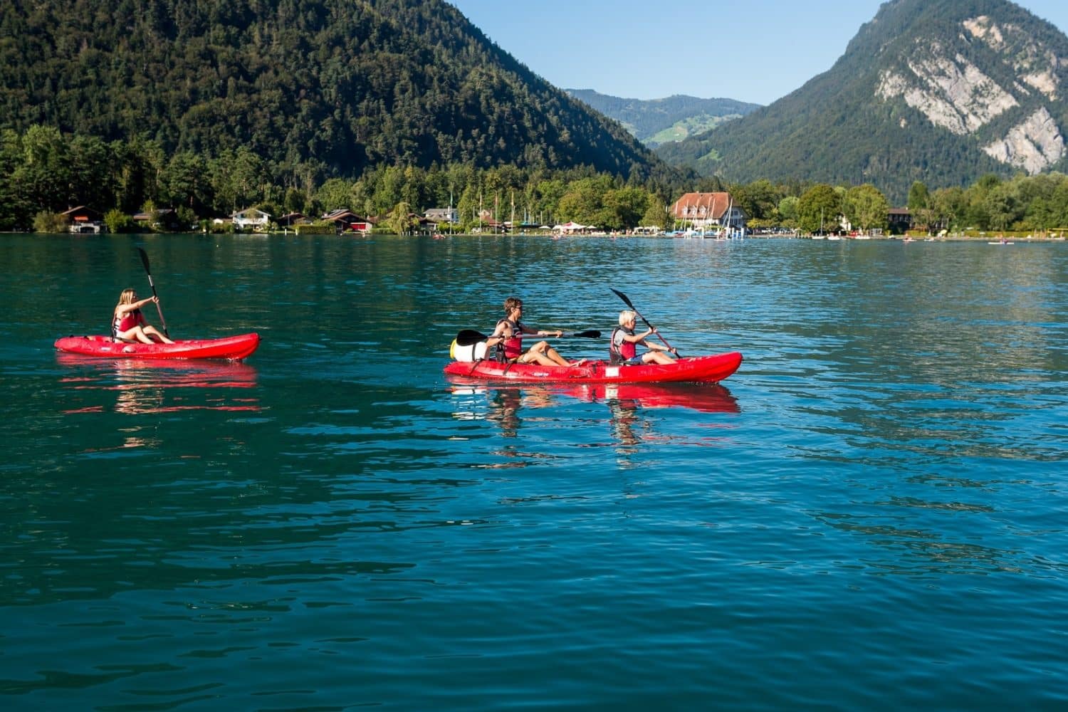 • Take in the beautiful views of Lake Thun and the surrounding mountains while you participate in the water activities.