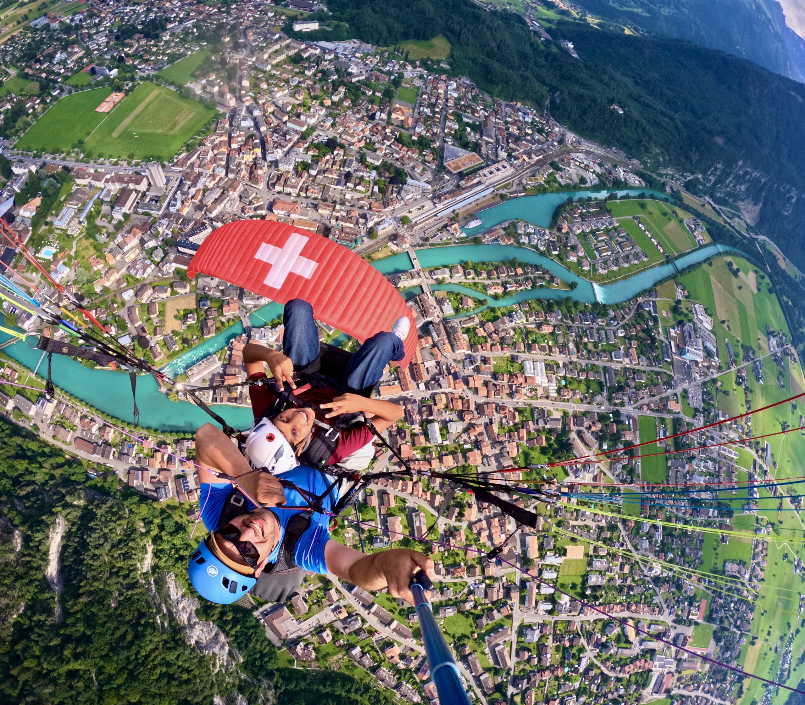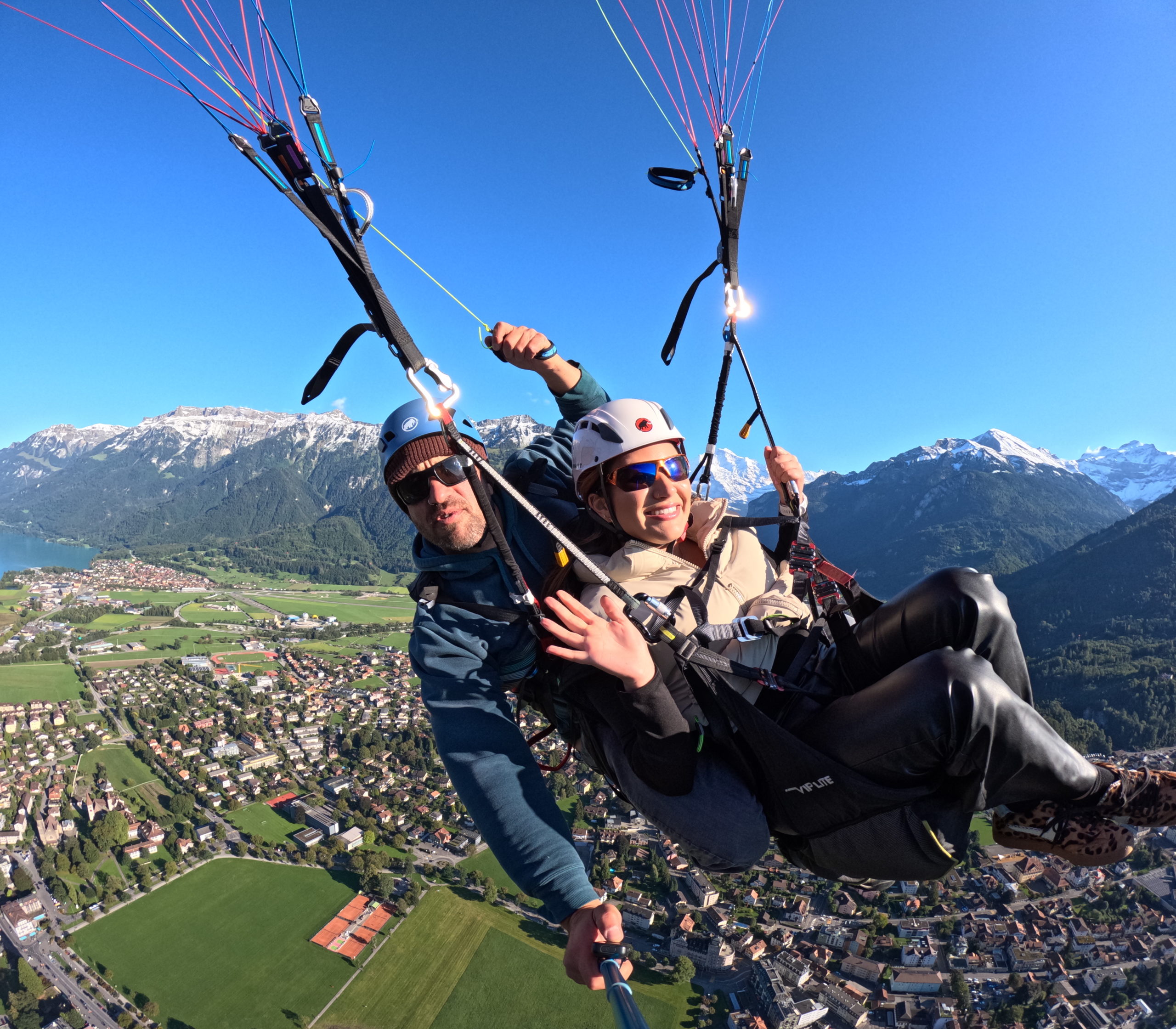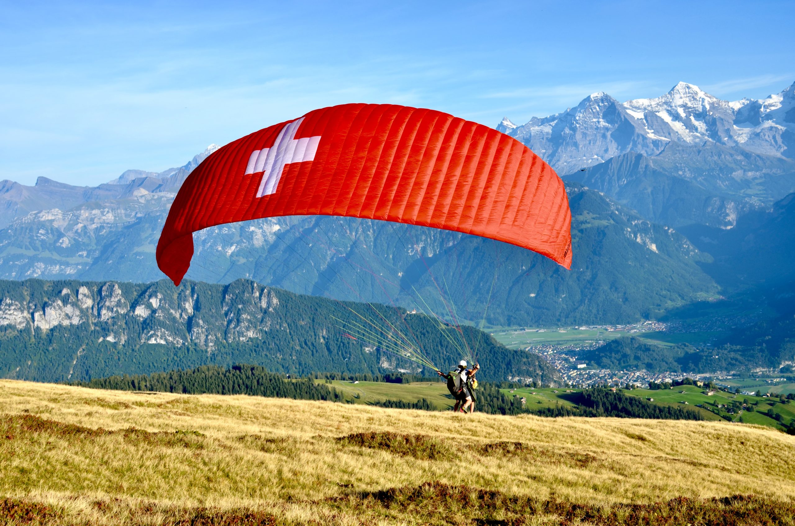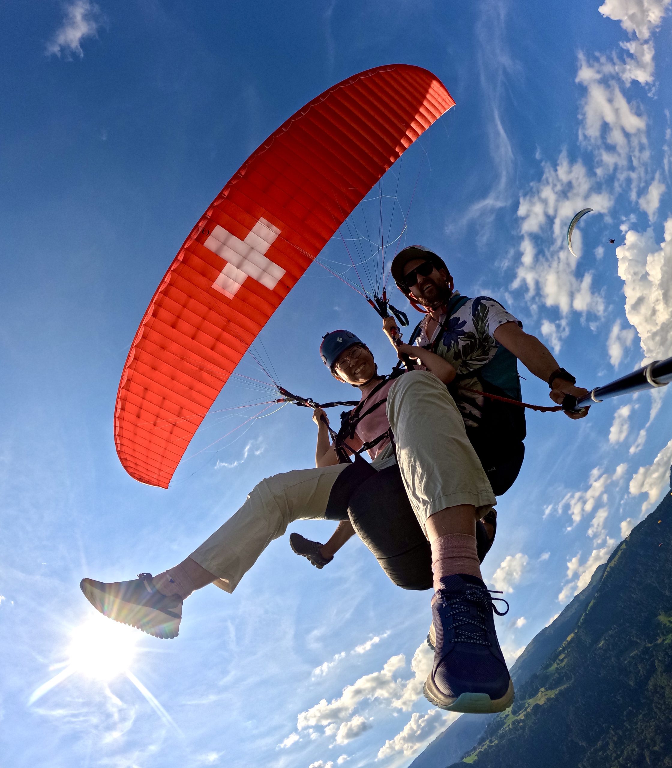 Every pilot provides his own picture and video service with a Special Paragliding Full HD Camera System to memorise your trip. Right after the flight your pilot will show you the picture and vdeo files on a tablet computer. If you want to buy these files you either get the Original SD-Card or a copy to your mobile phone. This extra service costs CHF 40.00 and has to be paid to your pilot.
