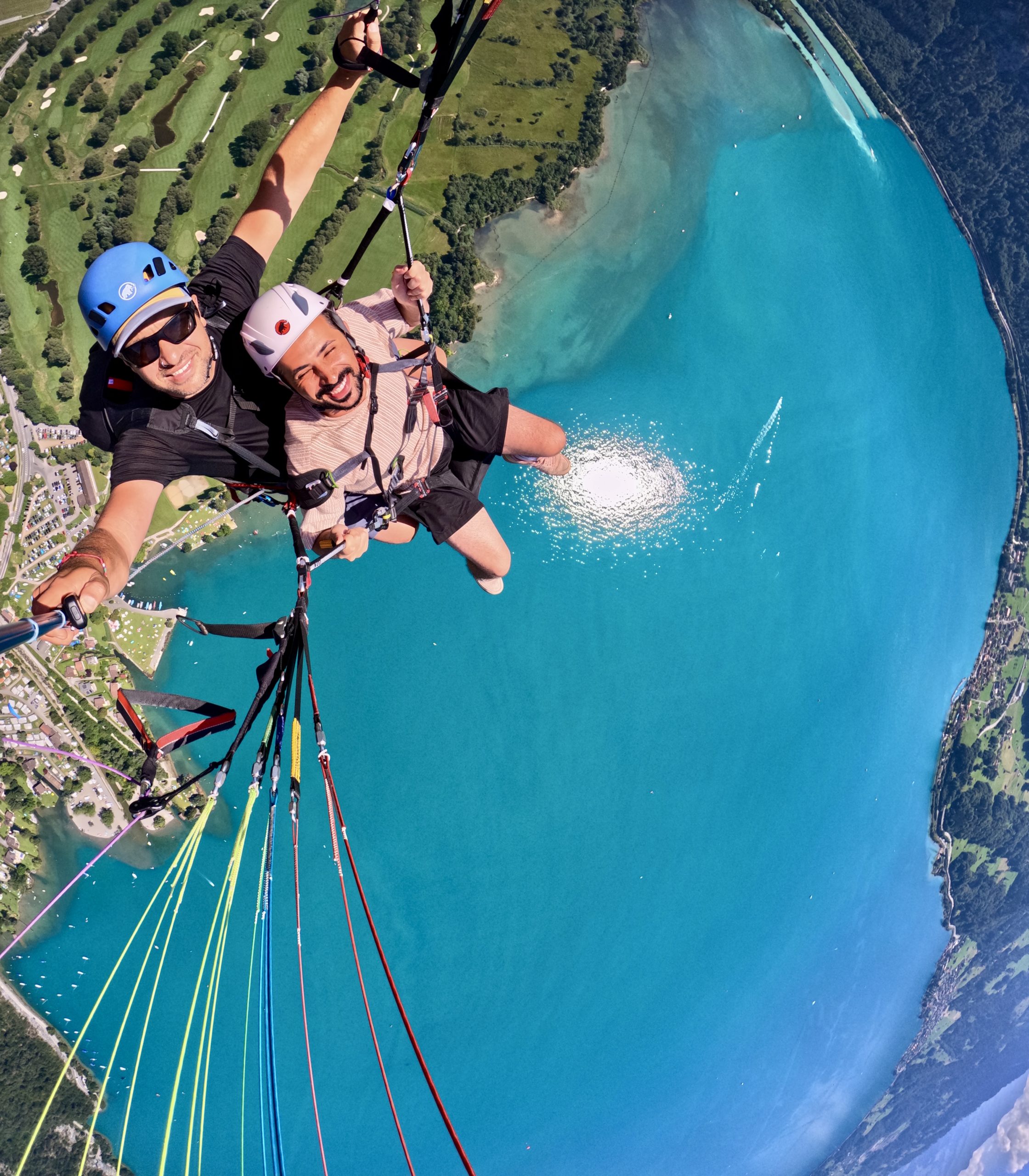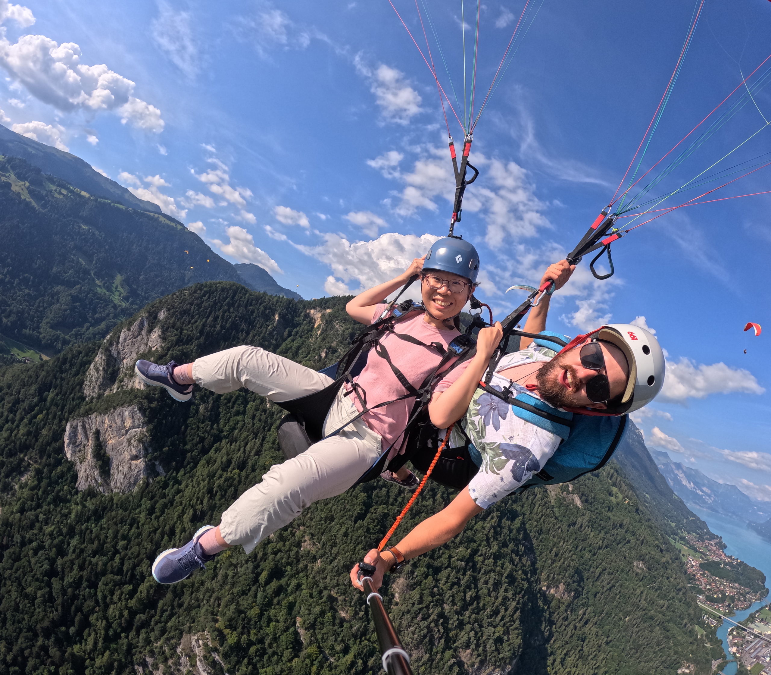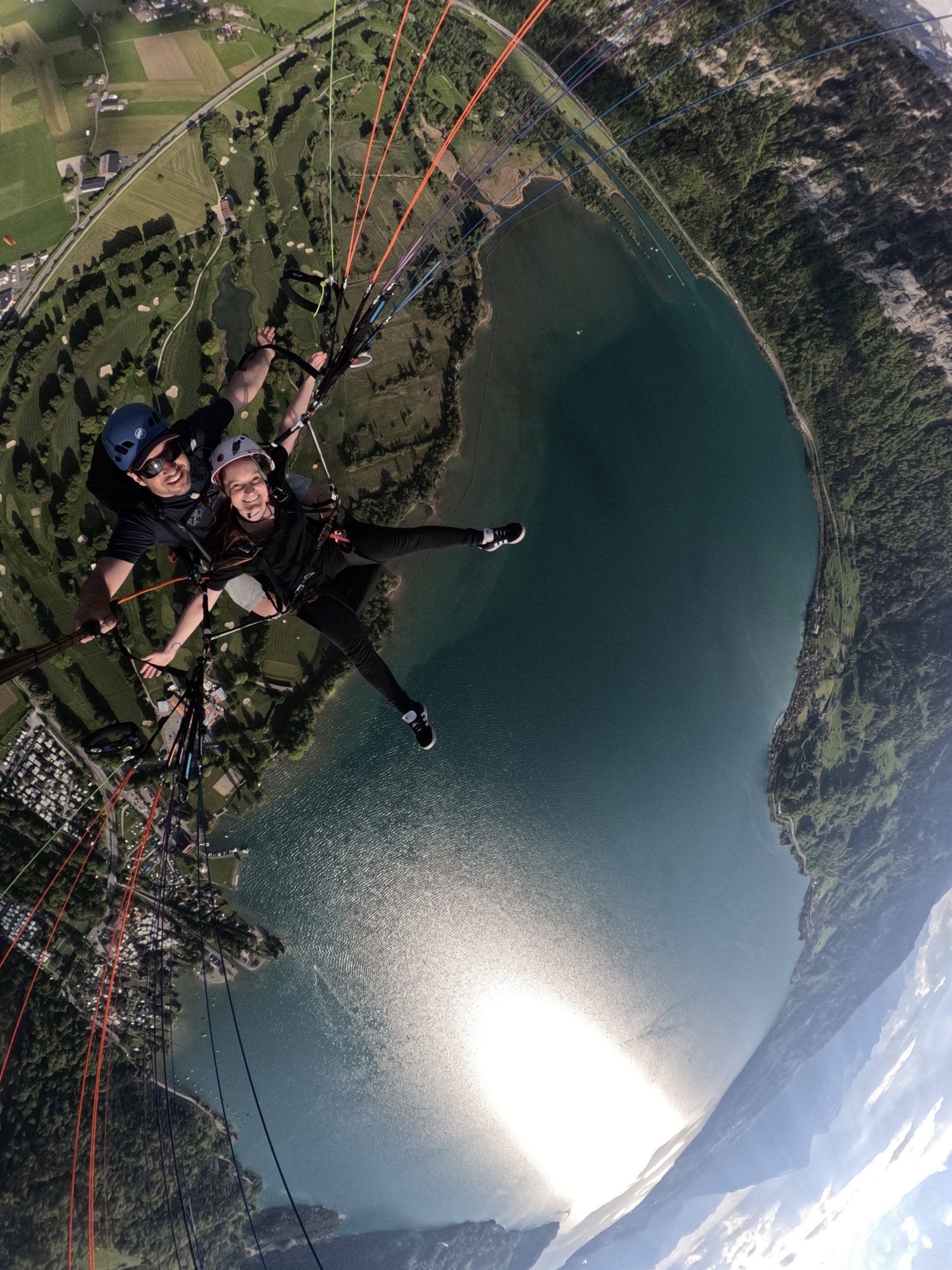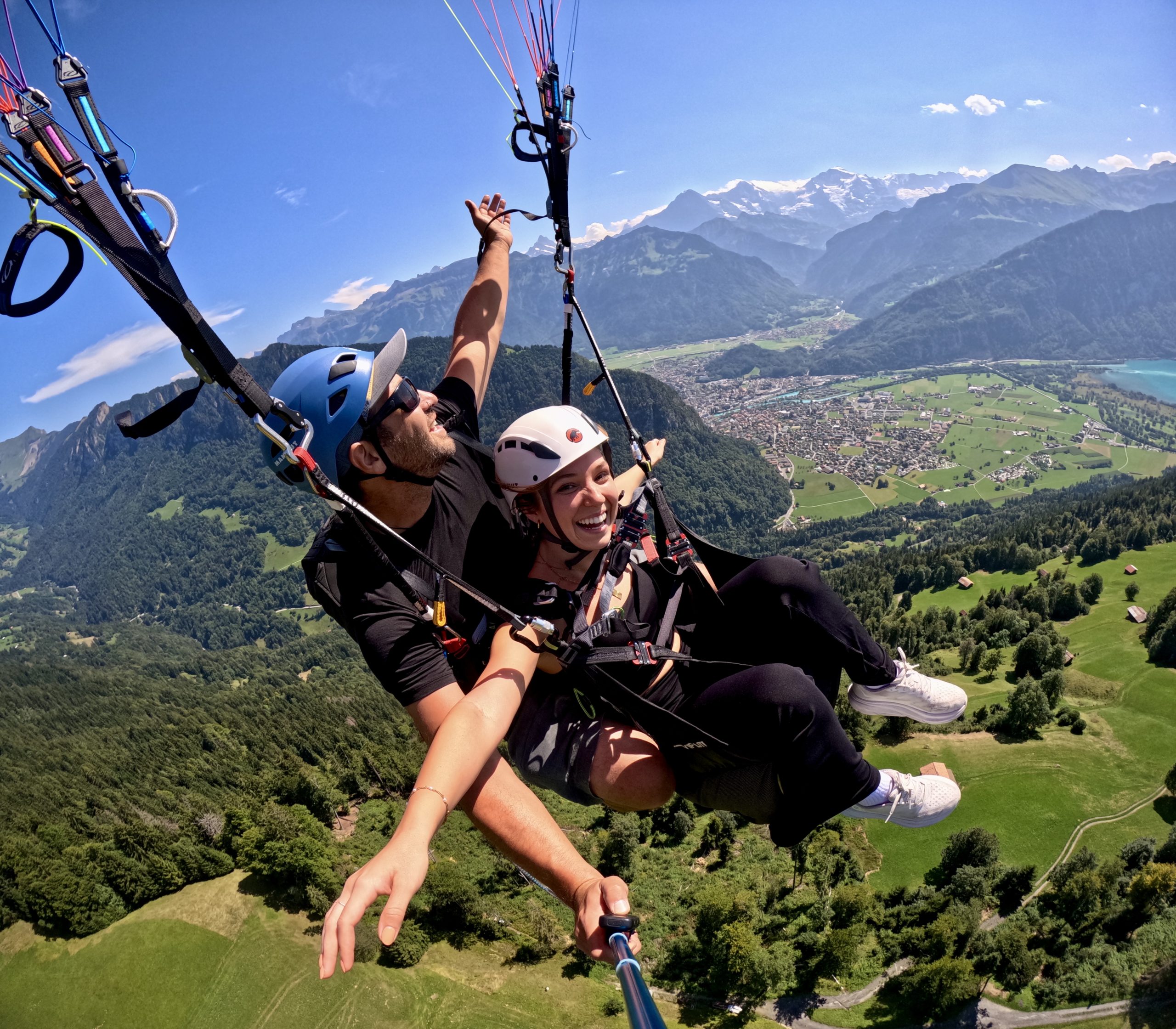 Every pilot provides his own picture and video service with a Special Paragliding Full HD Camera System to memorise your trip. Right after the flight your pilot will show you the picture and vdeo files on a tablet computer. If you want to buy these files you either get the Original SD-Card or a copy to your mobile phone. This extra service costs CHF 40.00 and has to be paid to your pilot.